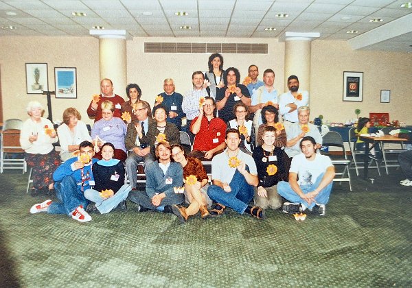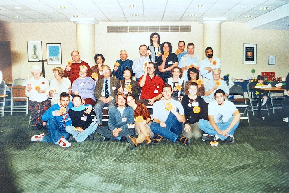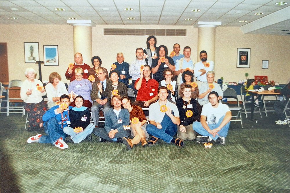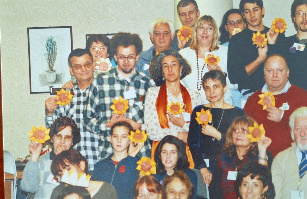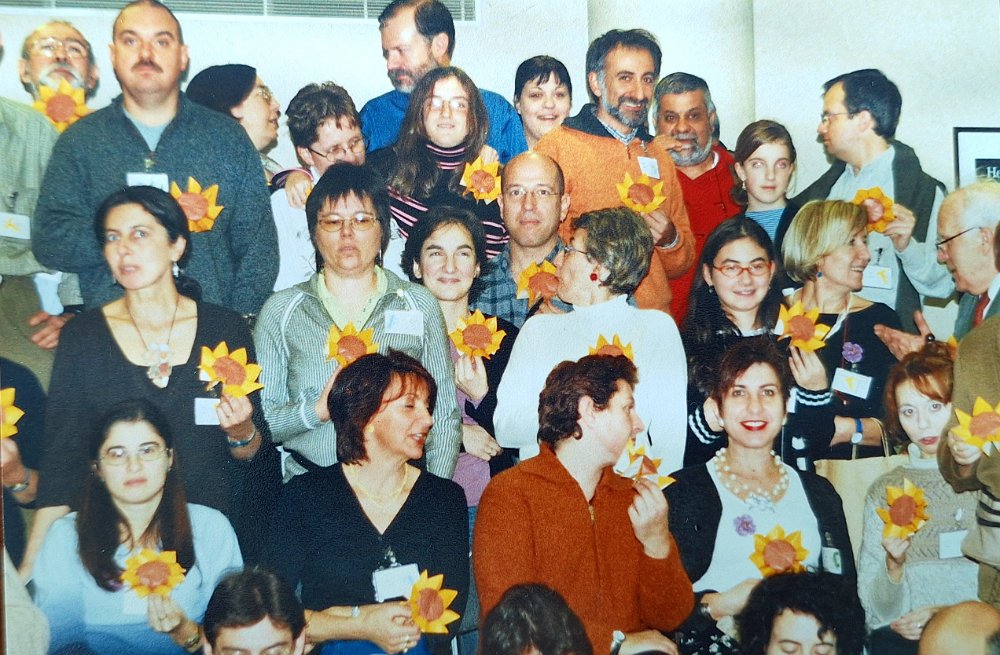 unica di spalle Erika Giuggia - prima fila da dx Nicoletta Maggino - maglione arancio Enrica Dray - Vanda Battaglia e di fianco Elena Oddone - seconda fila da destra una giovane Fioretta Corti sempre nelle vicinanze di Palacios - Ultima fila maglione sul collo Giulio Artom - maglione rosso Raffaele Leonardi con vicino Orazio Puglisi - dietro Alessia Leonardi - Robert Lang - Francesco Decio che spunta con un girasole