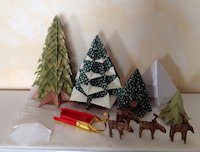 Note: Slitta e renne: Roberto gretter; albete girandolo, albert, Chrismas Wish, Sara Cesari; albero piramidato: Fioretta Conti Milesi; abete/cumulo di neve/sulla strada: Aurele Duda